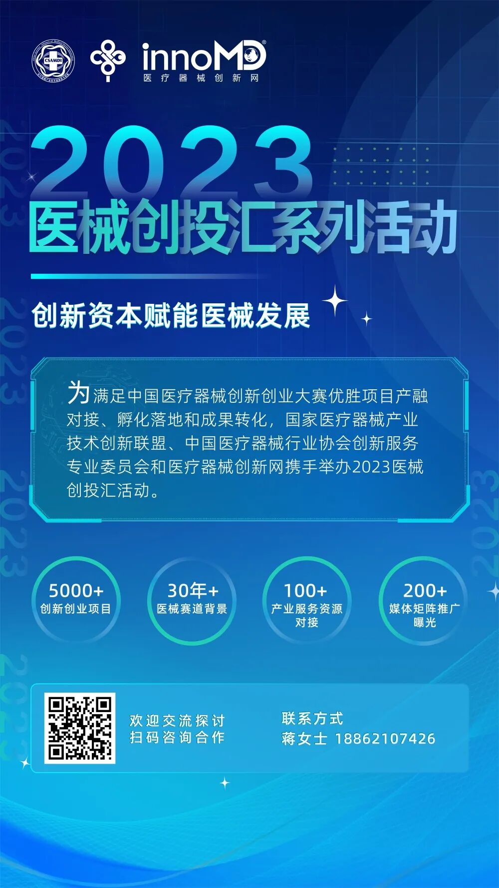 为满足中国医疗器械创新创业大赛优胜项目产融对接、孵化落地和成果转化,国家医疗器械产业技术创新联盟、中国医疗器械行业协会创新服务专业委员会和医疗器械创新网共同联合举办“聚势共赢·创投相伴 ”2023医械创投汇系列活动。