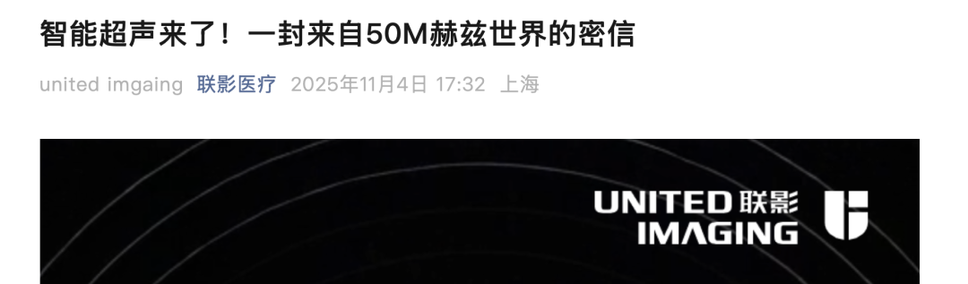 11月4日,联影医疗官微发布消息,其智能超声uSONIQUE新品将于11月12日全球首发。