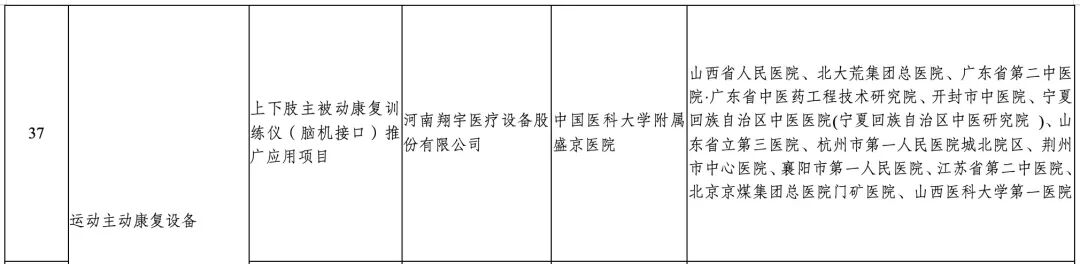 基于技术限制和临床风险,侵入式脑机接口的商业化进程相对较慢,在非侵入路线赛道,康复治疗被业内寄予厚望。在此次公示中,由翔宇医疗牵头的上下肢主被动康复训练仪(脑机接口)推广应用项目入选