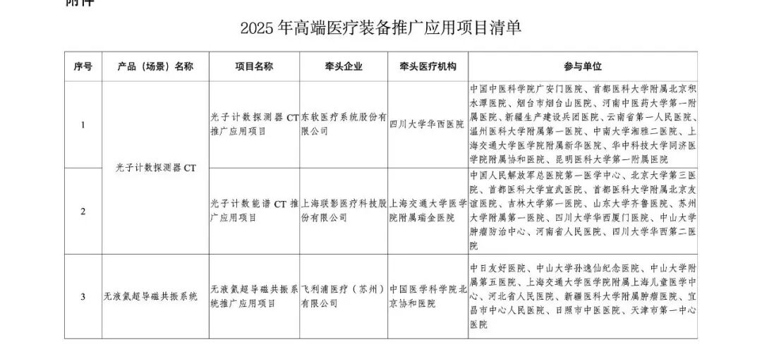 光子CT、无液氦磁共振、脑机接口......高端医疗设备推广项目公布。