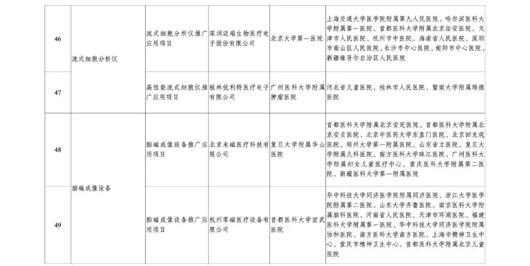根据公示清单,此次共计57个项目入选,参与单位包括北京协和医院、北京积水潭医院、上海新华医院、上海瑞金医院、山东齐鲁医院等国内顶级大三甲,涉及的多款近期备受关注的热门高端设备。