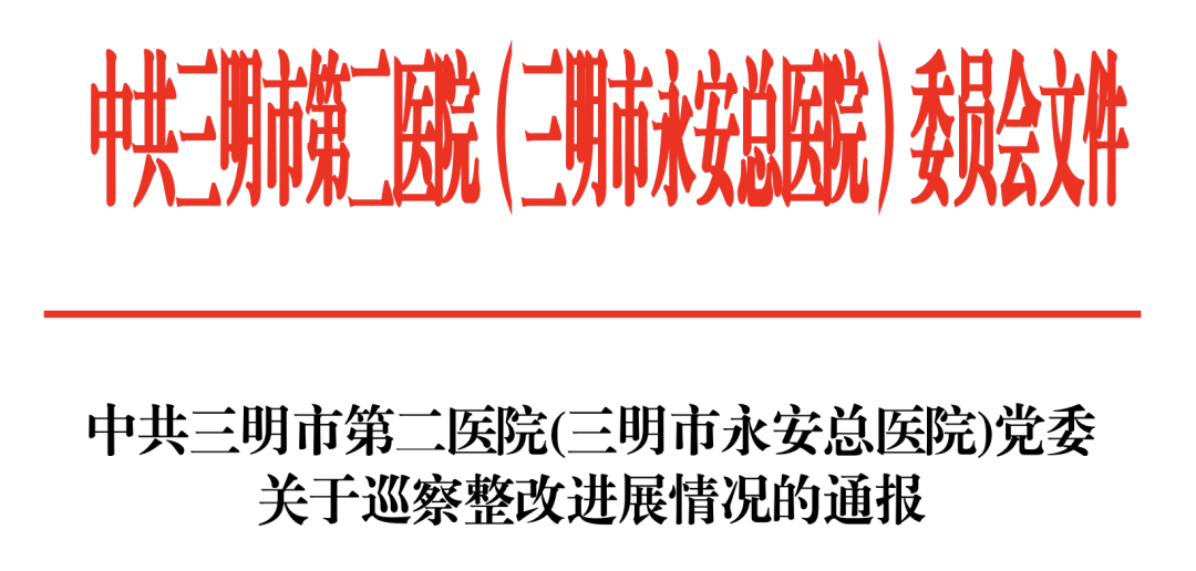 近日,福建三明市第二医院发布《关于巡察整改进展情况的通报》。
