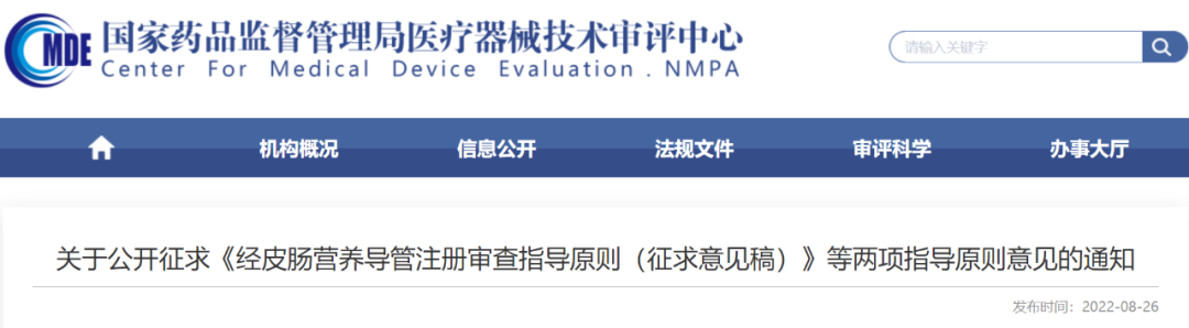 1.《经皮肠营养导管注册审查指导原则(征求意见稿)》
