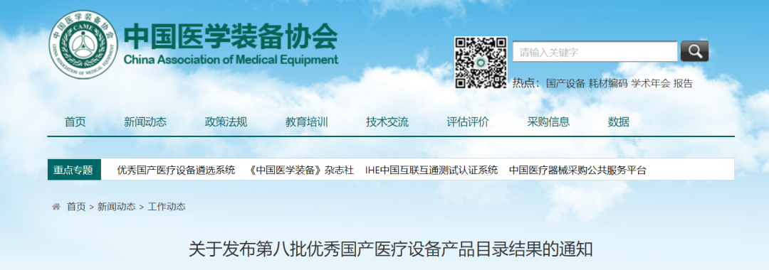 日前,受国家卫健委规划发展与信息化司委托,中国医学装备协会完成了第八批优秀国产医疗设备产品目录遴选工作,并公布了《第八批优秀国产医疗设备产品目录》。