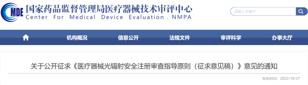 根据国家药品监督管理局2022年度医疗器械注册审查指导原则制修订计划的有关要求,我中心组织编制了《医疗器械光辐射安全注册审查指导原则》,经调研、讨论,现已形成征求意见稿(附件1),即日起在网上公开征求意见。