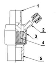 1-机器端口;2-辅助端口;3-外壳;4-过滤介质;5-患者端口