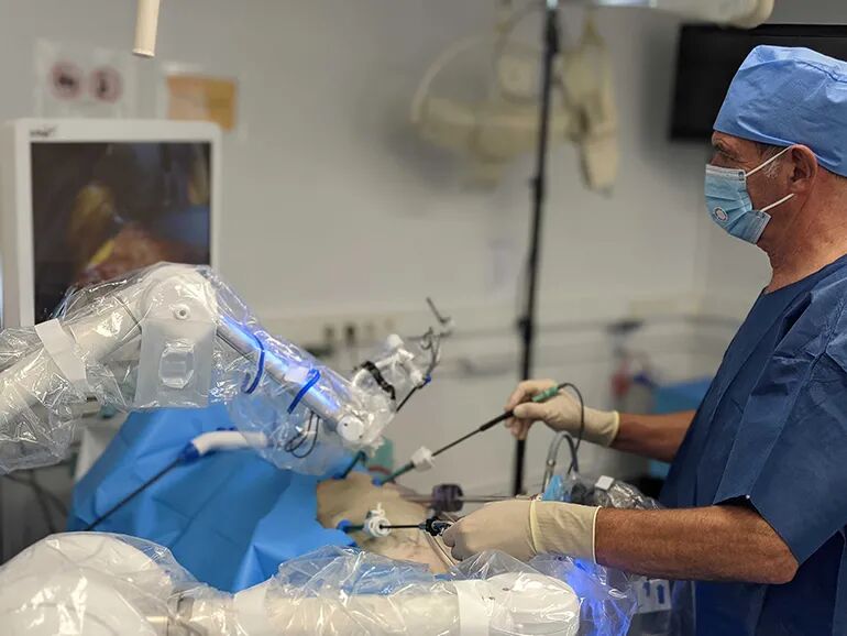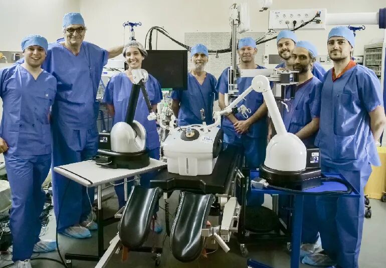 医生在手术台旁操作,有“触觉”。