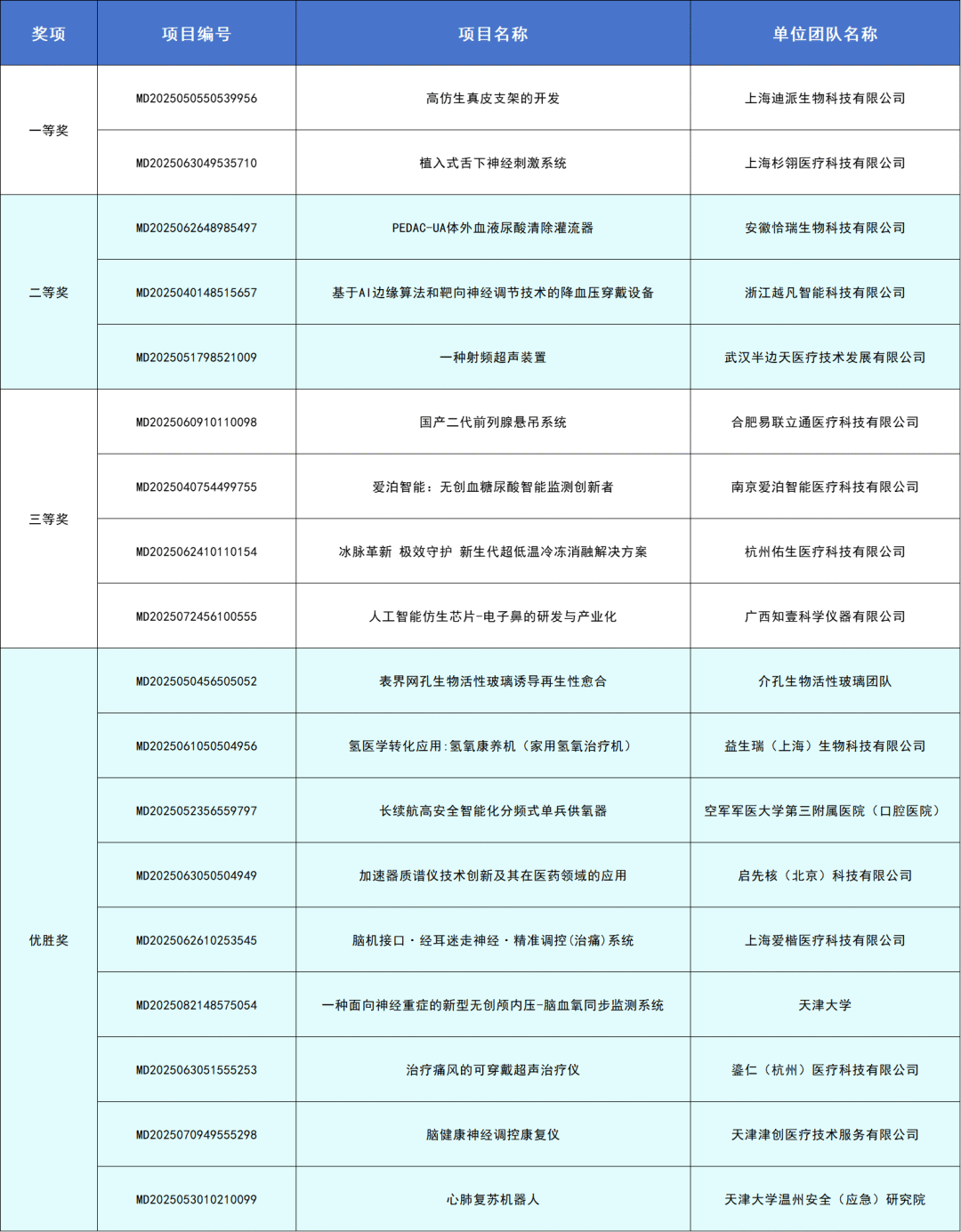 项目入围公示丨第八届(2025)中国医疗器械创新创业大赛诊疗设备类别赛即将高燃开赛!