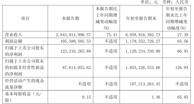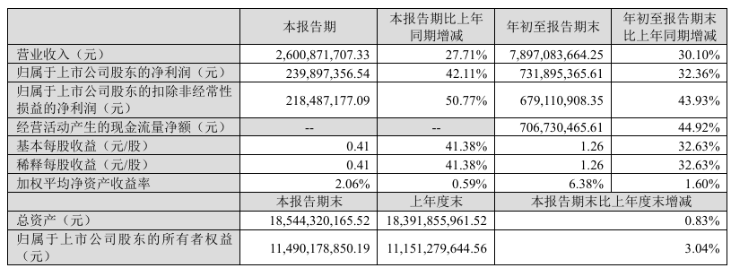 2025 年前三季度,公司实现营业收入2,583,390.65万元,较上年同期下降12.38%;2025年第三季度,公司实现营业收入909,090.27万元,较上年同期增长1.53%,如期迎来拐点;经公司初步测算, 2025年第四季度营业收入同比增长相较2025年第三季度有所提速。
