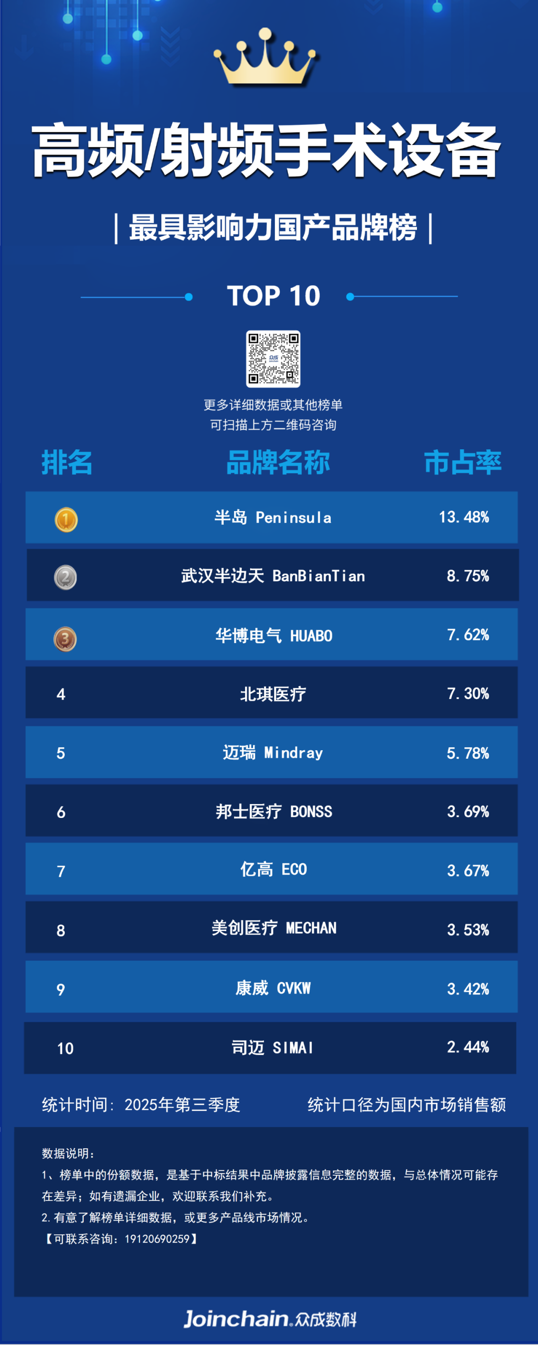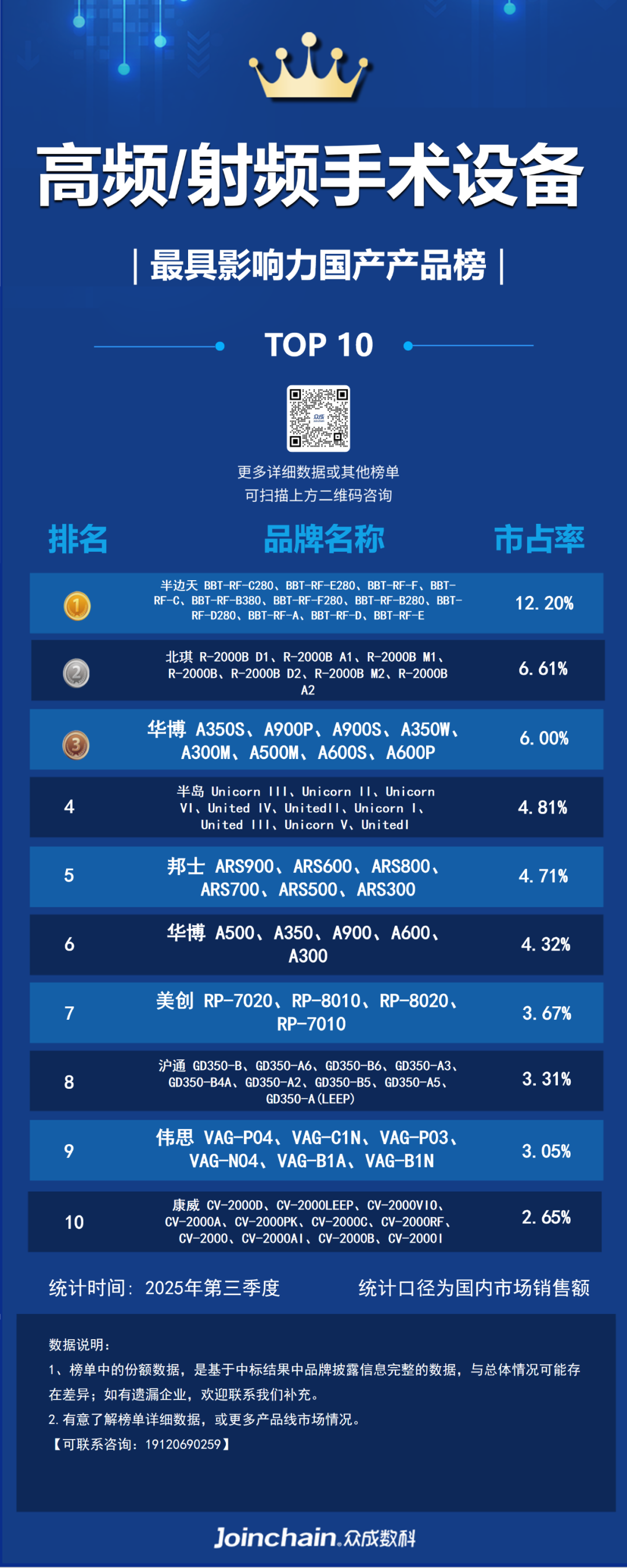 图 1 2025年第三季度高频/射频手术设备最具影响力品牌榜