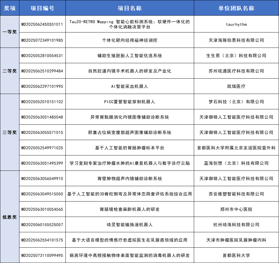 第八届(2025)中国医疗器械创新创业大赛 人工智能与医用机器人类别赛(初创组)